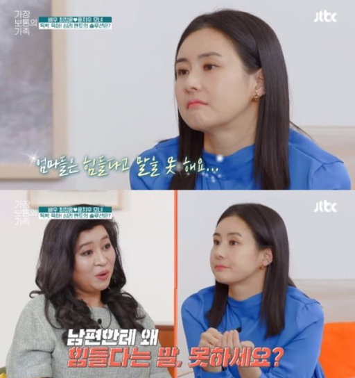최정윤의 일상을 본 오은영 심리전문가는 “짠하다. 엄마들은 가식을 키우면서 힘들다는 말을 못한다. 한편으로 나는 눈물이 날 것 같다”라고 말했다. 이에 최정윤은 “가끔 울 때도 있다”라고 전했다.