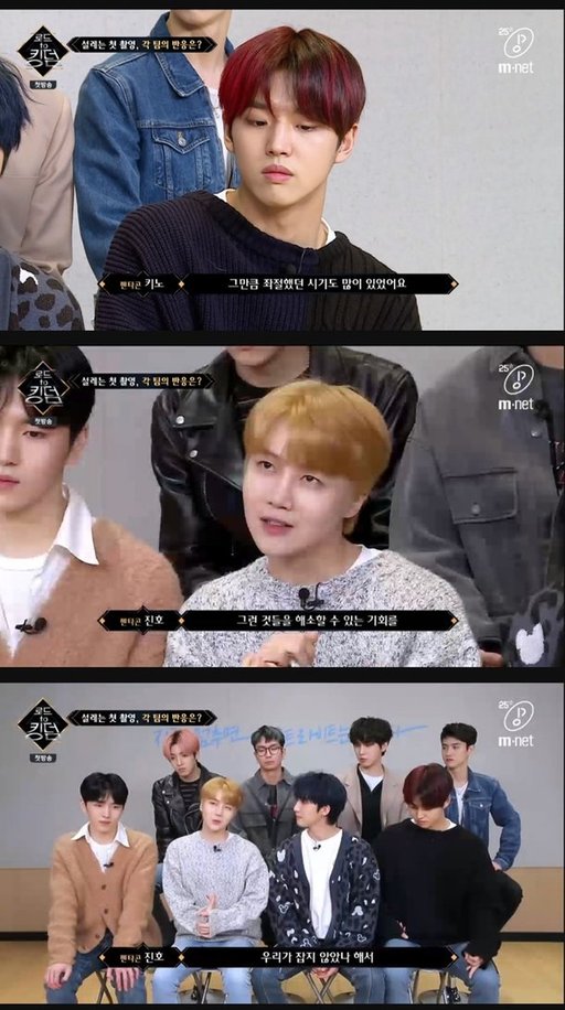 특히 후이는 “이가 없으면 잇몸으로 해야한다”고 열정을 불태웠다. 이어 후이가 “분량 욕심도 있다”고 하자 진호는 “욕심내도 된다”고 솔직하게 말했다.키노는 “저희가 멤버 수 변화도 있고 이런 저런 사건도 있었다. 그만큼 좌절했던 시기도 많았다”며 간접적으로 이던의 탈퇴를 언급했다. 또한 현재 중국 출신 멤버 옌안도 건강상 이유로 활동을 중단해 8인조로 활동 중인 상황이다.