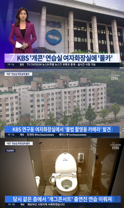 KBS 등에 따르면 지난 29일 KBS의 한 PD가 “연구동 4층 여자화장실에 불법촬영용 카메라가 있는 것 같다”고 회사에 신고하면서 경찰 수사가 시작됐다. 발견 당시 같은 층에선 코미디 프로그램 ‘개그콘서트’가 마지막 녹화를 앞두고 막바지 연습을 했던 것으로 확인됐다.