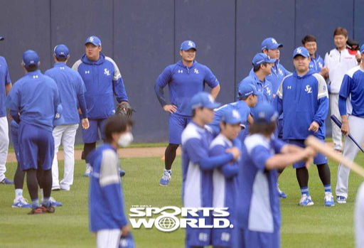 [스포츠월드 김두홍 기자]프로야구 삼성 투수 오승환(가운데)이 2일 잠실구장에서 열린 LG와의 경기에 앞서 훈련을 하기 위해 그라운드로 나가고 있다. 잠실=김두홍 기자 kimdh@sportsworldi.com 2020.06.02.