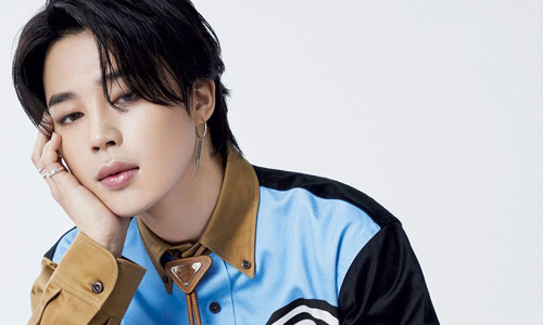 분위기의 제왕다웠다. 화보 속 지민은 한쪽 턱을 괴고 오묘한 눈빛으로 정면을 응시했다. 황금색과 연 블루 검정의 조합으로 이루어진 셔츠와 블랙 팬츠, 볼로 타이는 지민의 고급스러움과 우아함을 더했다.