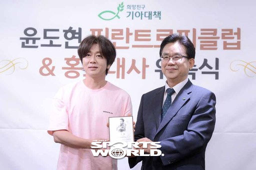 [스포츠월드 김두홍 기자] 가수 윤도현(왼쪽)이 2일 강서구 희망친구 기아대책 사옥에서 열린 '희망친구 기아대책 윤도현 필란트로피클럽 & 홍보대사 위촉식'에서 기아대책 유원식 회장과 포즈를 취하고 있다. 사진=김두홍 기자 kimdh@sportsworldi.com 2020.07.02.