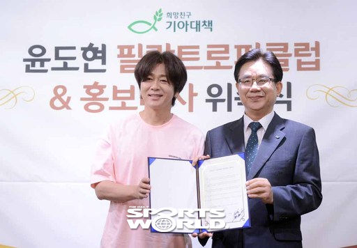 [스포츠월드 김두홍 기자] 가수 윤도현(왼쪽)이 2일 강서구 희망친구 기아대책 사옥에서 열린 '희망친구 기아대책 윤도현 필란트로피클럽 & 홍보대사 위촉식'에서 기아대책 유원식 회장과 포즈를 취하고 있다. 사진=김두홍 기자 kimdh@sportsworldi.com 2020.07.02.
