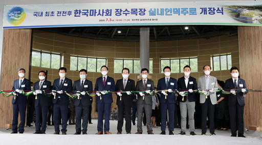 [배진환 기자] 한국마사회(회장 김낙순)는 3일 오전 내륙지역 경주마 생산·육성의 전초기지 장수목장에서 실내언덕주로 개장식을 개최했다.