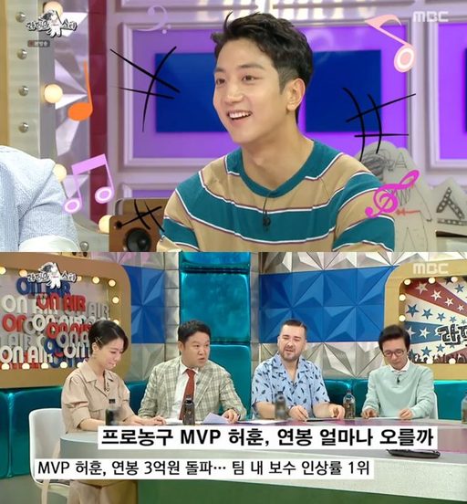 이날 허훈은 “제가 지금 프로 3년 차인데 최고 연봉 인상률을 찍었다. 126%고 지금 3억4000만 원 정도다. 방송 노출 많이 하면 팀 홍보를 끼우면 연봉 인상률을 많이 챙겨주겠다는 그런 조건도 있었다”라고 말했다. 이어 허훈은 “저는 연봉 테이블 측에 저는 ‘미디어 많이 출연하니 인센티브 많이 달라’ 그런 얘기도 했다”라며 신세대다운 당당한 면모를 보였다.