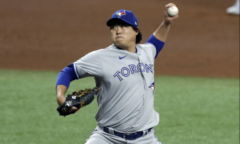 류현진(33·토론토 블루제이스)이 든든한 득점지원에도 첫 승을 신고하지 못했다. 류현진은 25일(이하 한국시간) 미국 플로리다주 세인트피터즈버그에 위치한 트로피카나 필드에서 열린 탬파베이 레이스와의 개막전에 선발 등판, 4⅔이닝 4피안타(1피홈런) 3실점을 기록했다. 3볼넷 1사구가 있었으며, 삼진은 4개 솎아냈다. 이날 최고 구속은 92.3마일(약 149㎞)까지 찍혔다.