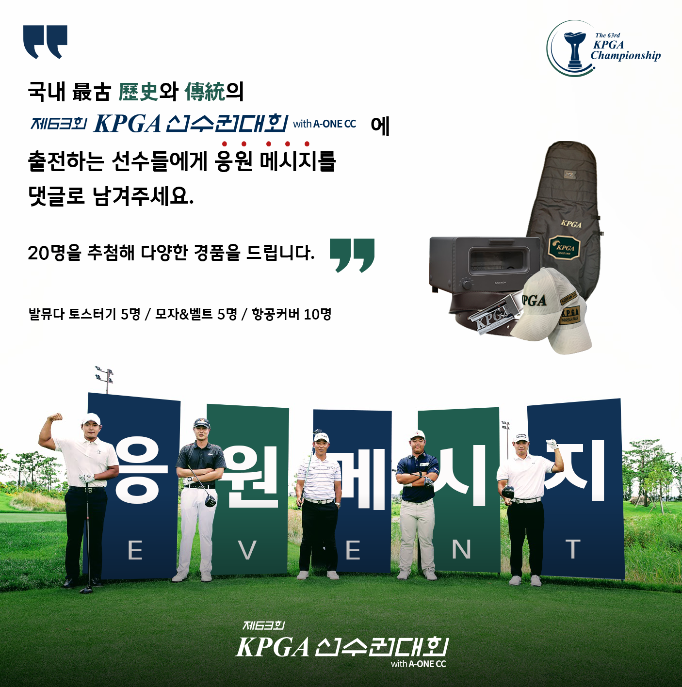 KPGA는 내달 6일부터 경남 양산시에 위치한 에이원컨트리클럽 남, 서 코스에서 진행되는 국내 최고 역사와 전통의 ‘제63회 KPGA 선수권대회 with A-ONE CC’ 대회를 앞두고 골프 팬들을 위한 ‘응원 메시지 이벤트’를 펼친다.