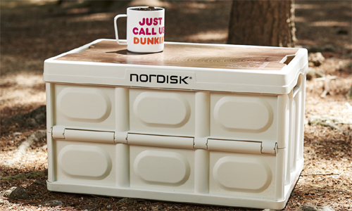 던킨도 지난달 27일 사전예약으로 판매한 ‘노르디스크 폴딩박스’가 첫날에 모든 수량이 소진됐다. 노르디스크는 덴마크 친환경 아웃도어 브랜드로 캠핑족에게 인기다. 던킨이 준비한 폴딩박스는 아이보리 컬러 카트에 우드 상판이 부착돼 어디서든 테이블을 만들 수 있다.