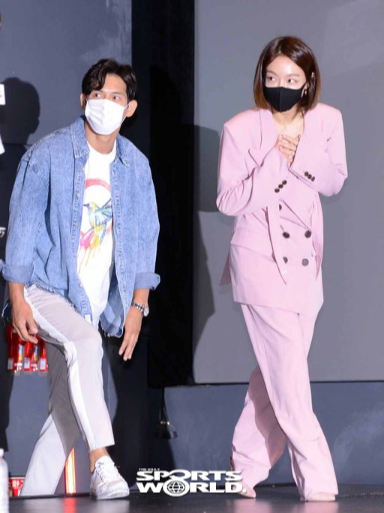 [스포츠월드 김두홍 기자]배우 오지호(왼쪽)와 신소율이 4일 롯데시네마 건대점에서 열린 영화'태백권(최상훈 감독)'기자간담회에 참석하고 있다.