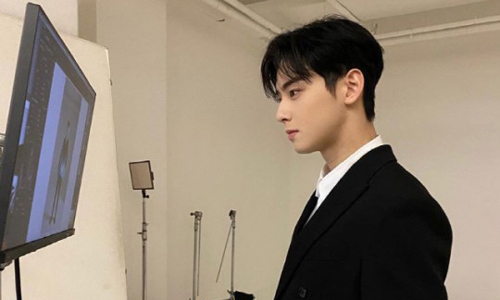 사진 속 차은우는 블랙 슈트를 입고 진지하게 모니터링 하고 있는 모습으로 완벽한 비주얼을 뽐내 팬들의 감탄을 자아냈다.