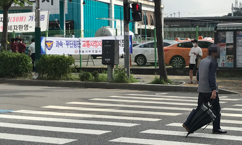 마침 이날은 경찰과 사회복무요원이 ‘과속·무단횡단 교통사망사고 발생 지점’이라고 적힌 플래카드를 해당 장소에 설치하고 있었다. 하지만 달리는 차에서는 정확히 확인할 수 없는 도로 측면에 부착돼 실효성에 대한 의문이 있다. 더구나 경찰이 플래카드를 부착하고 있을 당시에도 신호위반 및 과속 차량, 무단횡단 보행자, 자전거를 탑승한 채 횡단하는 이들을 다수 목격할 수 있었다. 이에 앞으로도 흡사한 교통사고가 발생하지 않는다는 보장이 없었다.