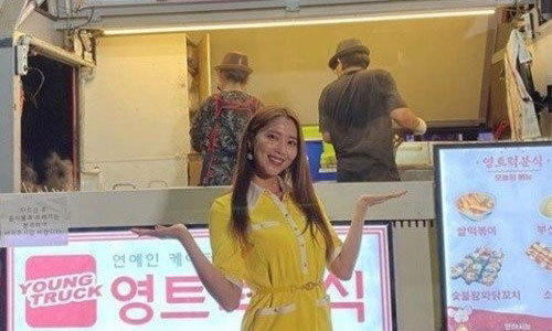 공개된 사진 속에는 형부가 드라마 촬영장으로 보내준 간식차 앞에서 활짝 웃고 있는 오윤아의 모습이 담겼다.
