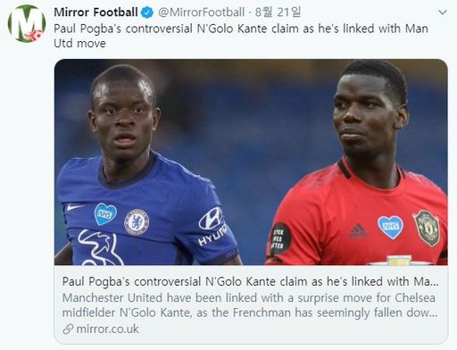 현지언론에선 맨유가 캉테를 품는다면 좋은 영입이 될 것으로 내다봤다. 프랑스 국가대표팀에서 한솥밥을 먹으며 국제축구연맹(FIFA) 월드컵 정상에도 섰던 포그바와 캉테의 호흡을 기대하고 있다.