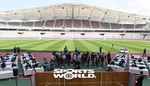 [스포츠월드 김두홍 기자]28일 고양종합운동장에서 열린 '2020 하나은행컵 축구국가대표팀vs올림픽대표팀 명단발표 기자회견에서 선수명단을 발표하고 있다. 고양=김두홍 기자 kimdh@sportsworldi.com 2020.09.28.