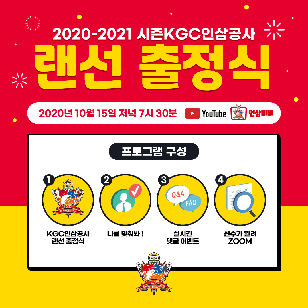 KGC인삼공사는 시즌 개막을 앞두고 팬들과 함께 새 시즌에 대한 각오와 의지를 다지는 출정식을 진행한다. 이번 출정식은 신종 코로나바이러스 감염증(코로나19)으로 인해 비대면 출정식인 랜선으로 펼친다.