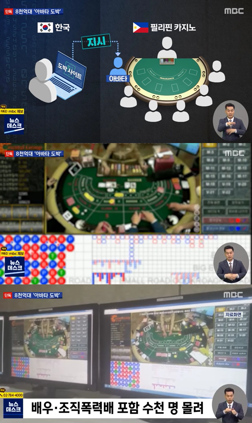 지난 25일 MBC 보도에 따르면 해당 도박 사이트는 온라인 비대면 도박, 일명 ‘아바타 도박’ 방식으로도 운영됐다. 필리핀 카지노가 생중계로 현장을 보여주고 국내에서 접속한 참여자들이 현장의 사람을 ‘아바타’로 지정한 뒤 배팅을 지시하는 수법이다.