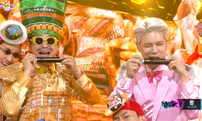 노라조(조빈, 원흠)는 4일 방송된 KBS2 '뮤직뱅크'에 출연해 신곡 '빵' 무대를 선보였다.