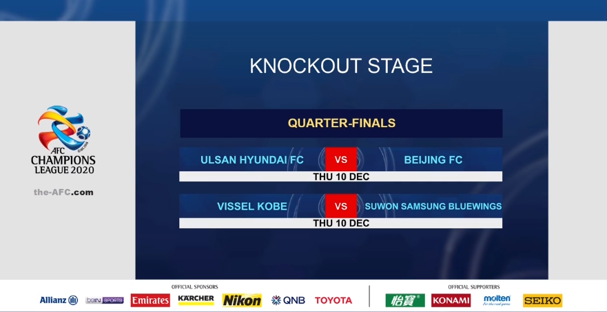 이번 조추첨식에는 2020 ACL 8강에 진출한 동아시아 지역 4개 팀이 참가했다. 추첨결과 울산과 베이징, 수원과 고베가 8강서 만나게 됐다. 서아시아 지역은 지난 10월 조별리그와 토너먼트를 마쳤고 이란의 페르세폴리스가 결승에 올라와 있다.