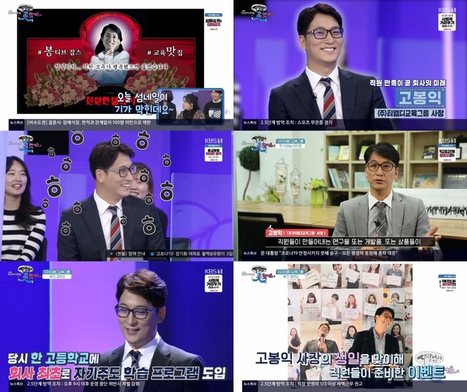 13일 오후 KBS1 ‘청년 일자리 프로젝트 사장님이 美쳤어요 시즌4’ 2회가 방송됐다. 이날 자기주도학습 인재 육성 등 다양한 컨설팅으로 굴지에 오른 티엠디 교육그룹의 고봉익 대표는 ‘봉티브 잡스’, ‘교육 맛집’이라는 소개 해시태그로 등장, 성공 비결을 전해 눈길을 끌었다.