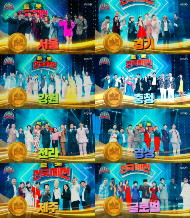 이외에도 ‘트롯 전국체전’에는 다양한 아이돌 출신 가수들이 등장했다. K-트로트 장르를 세계에 알리고 싶다는 포부를 전한 아이돌 밴드 출신 알파벳의 ‘찐이야’ 무대부터 걸스데이 원년 멤버 장혜리의 ‘눈물비’, 눈부신 미모의 소유자이자 걸그룹 오로라 출신 권민정은 ‘비 내리는 영동교’로 무대도 펼쳤다.