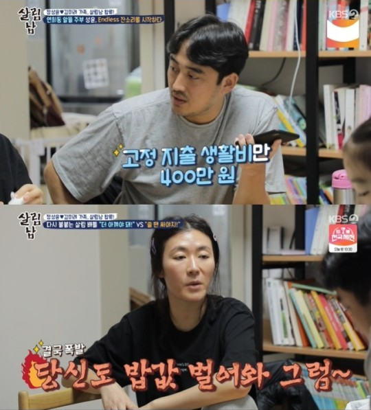 19일 방송된 KBS2 예능프로그램 ‘살림하는 남자들 시즌2’에서는 지출 문제를 두고 다투는 코미디언 김미려와 그의 남편 정성윤의 모습이 그려졌다.