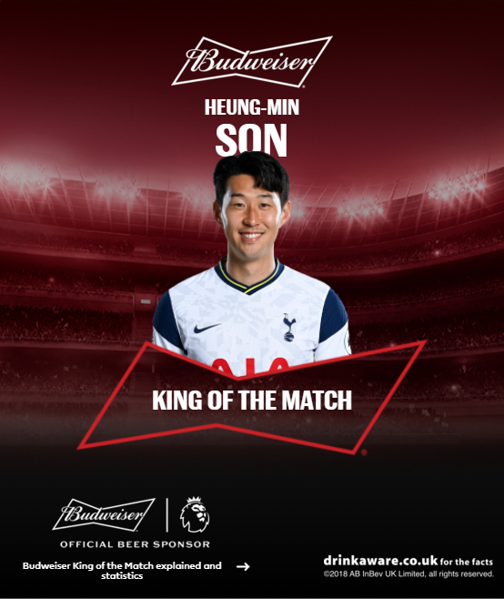 [스포츠월드=김진엽 기자] 잉글랜드 프로축구 프리미어리그(EPL) 토트넘홋스퍼 공격수 손흥민(29)이 KOTM(King Of The Match) 경기 최우수 선수로 선정됐다.