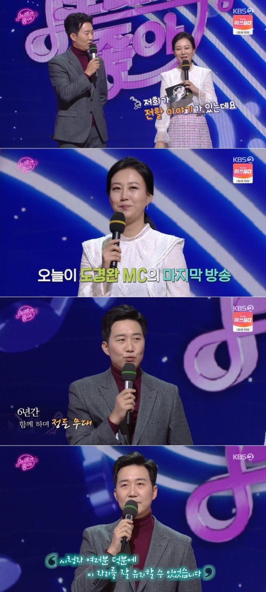 2일 방송된 KBS2 ‘노래가 좋아’에서는 도경완이 하차를 알리고 마지막 인사를 전하는 모습이 전파를 탔다.