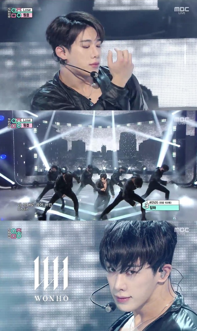 원호는 27일 오후 방송된 MBC ‘쇼! 음악중심’에 출연해 첫 번째 미니앨범 PART.2 ‘Love Synonym #2 : Right for Us(러브 시노님 #2 : 라이트 포 어스)’의 타이틀곡 ‘Lose(루즈)’ 컴백 무대를 펼쳤다.