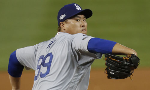 사진=AP/뉴시스 (류현진의 존재감이 짙어지고 있다. 현지 매체가 선정한 톱100에서 당당히 50위를 차지했다. 지난해 94위에서 44계단이나 오른 모습이다.)