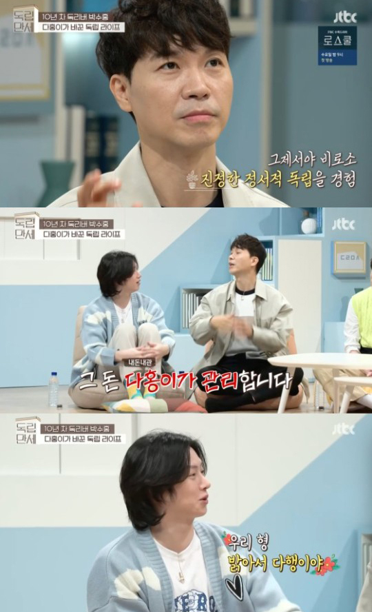이날 박수홍은 “독립한 지는 10년 넘었는데 다홍이를 들인 2년 전부터 실질적으로 정신적이나 여러 면에서 진정한 독립을 한 것 같다”고 밝혔다.