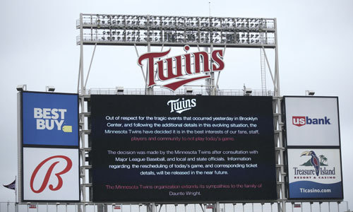 12일(현지시간) ‘NBC뉴스’ 등 복수 현지 매체에 따르면 브루클린 센터 인근에서 던트 라이트가 경찰지시에 불응하고 다시 탑승하는 과정에서 경찰에게 총을 맞았다. 이후 라이트는 운전으로 도주하다가 다른 차량을 들이받고 현장에서 사망했다. 이로 인해 미네소타주 내에 있는 프로스포츠 팀들의 홈 경기가 전부 취소되거나 연기됐다.