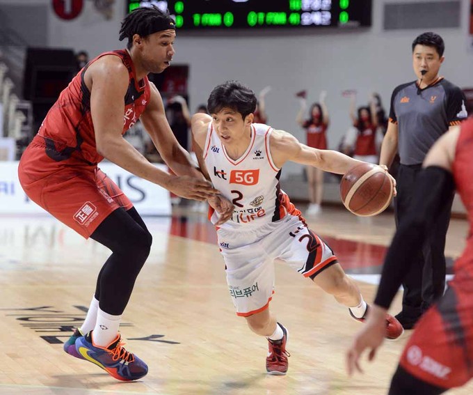 [SW포토]kt 허훈,'수비를 뚫러라' 기사입력 2021-04-13 19:06:24 기사수정 2021-04-13 19:06:22 글씨 크기 선택 가장 작은 크기 글자 한 단계 작은 크기 글자 기본 크기 글자 한 단계 큰 크기 글자 가장 큰 크기 글자 [스포츠월드 김두홍 기자] 남자프로농구 KT 허훈(오른쪽)이 13일 안양체육관에서 열린 인삼공사와의 6강 플레이오프 2차전에서 상대 설린저의 수비를 뚫고 있다. 안양=김두홍 기자 kimdh@sportsworldi.com 2021.04.13. [ⓒ 세계비즈앤스포츠월드 & sportsworldi.com, 무단전재 및 재배포 금지] 메뉴보기 페이스북 공유 트위터 공유 url 공유 더보기
