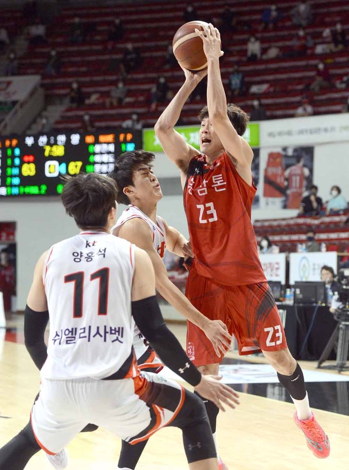 [SW포토]전성현의 한발 빠른슛 기사입력 2021-04-13 20:50:01 기사수정 2021-04-13 20:50:00 글씨 크기 선택 가장 작은 크기 글자 한 단계 작은 크기 글자 기본 크기 글자 한 단계 큰 크기 글자 가장 큰 크기 글자 [스포츠월드 김두홍 기자] 남자프로농구 인삼공사 전성현(오른쪽)이 13일 안양체육관에서 열린 KT와의 6강 플레이오프 2차전에서 슛을 하고 있다. 안양=김두홍 기자 kimdh@sportsworldi.com 2021.04.13. [ⓒ 세계비즈앤스포츠월드 & sportsworldi.com, 무단전재 및 재배포 금지] 메뉴보기 페이스북 공유 트위터 공유 url 공유 더보기