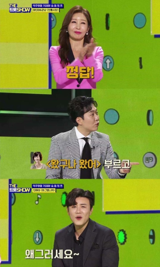 도경완은 진해성에게 이 노래를 표준어 버전 ‘왜그러세요’로 불러주길 즉석에서 요청한다. 진해성은 표준어로 노래하다가 어색해하며 사투리의 맛이 안 난다며 손사래를 쳐 웃음을 자아낸다.