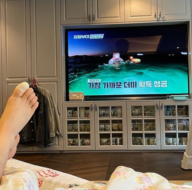 공개된 사진에는 침대에 누워 채널A ‘강철부대’를 시청하고 있는 정형돈의 모습이 담겼다. 최근 큰 인기를 끌고 있는 ‘강철부대’를 시청하고 있는 정형돈은 엄지발가락에 붕대를 감고 있어 눈길을 끈다.