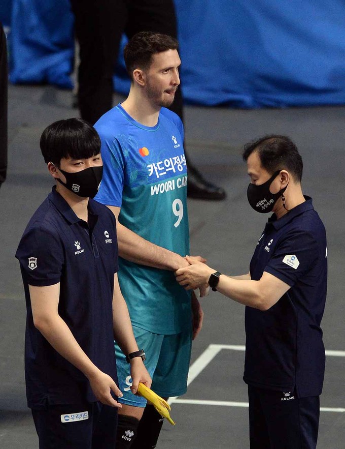[SW포토]우리카드 알렉스,'체했어요' 기사입력 2021-04-15 16:08:15 기사수정 2021-04-15 16:08:14 글씨 크기 선택 가장 작은 크기 글자 한 단계 작은 크기 글자 기본 크기 글자 한 단계 큰 크기 글자 가장 큰 크기 글자 [스포츠월드 김두홍 기자]남자프로배구 우리카드 알렉스(가운데)가 15일 장충체육관에서 열린 대한항공과의 챔피언결정전 4차전에서 치료를 받고 있다. 장충체=김두홍 기자 kimdh@sportsworldi.com 2021.04.15. [ⓒ 세계비즈앤스포츠월드 & sportsworldi.com, 무단전재 및 재배포 금지] 메뉴보기 페이스북 공유 트위터 공유 url 공유 더보기