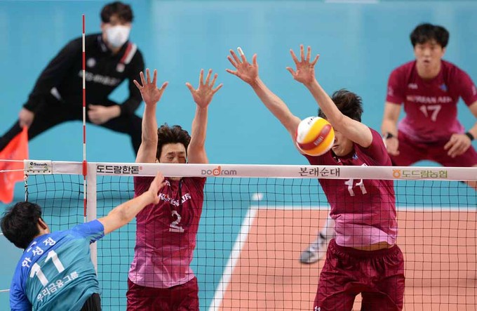 [SW포토]손현종,'기분좋은 블로킹득점 성공' 기사입력 2021-04-15 16:20:11 기사수정 2021-04-15 16:20:10 글씨 크기 선택 가장 작은 크기 글자 한 단계 작은 크기 글자 기본 크기 글자 한 단계 큰 크기 글자 가장 큰 크기 글자 [스포츠월드 김두홍 기자]남자프로배구 대한항공 손현종(오른쪽에서 두번째)이 15일 장충체육관에서 열린 우리카드와의 챔피언결정전 4차전에서 블로킹득점을 하고 있다. 장충체=김두홍 기자 kimdh@sportsworldi.com 2021.04.15. [ⓒ 세계비즈앤스포츠월드 & sportsworldi.com, 무단전재 및 재배포 금지] 메뉴보기 페이스북 공유 트위터 공유 url 공유 더보기
