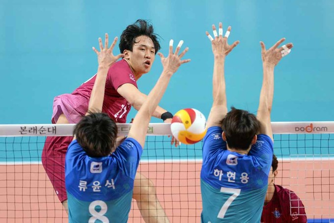 [SW포토]임동혁,'이번에는 가볍게 툭!' 기사입력 2021-04-15 16:23:01 기사수정 2021-04-15 16:23:00 글씨 크기 선택 가장 작은 크기 글자 한 단계 작은 크기 글자 기본 크기 글자 한 단계 큰 크기 글자 가장 큰 크기 글자 [스포츠월드 김두홍 기자]남자프로배구 대한항공 임동혁(위)이 15일 장충체육관에서 열린 우리카드와의 챔피언결정전 4차전에서 상대 블로킹을 피해 스파이크를 하고 있다. 장충체=김두홍 기자 kimdh@sportsworldi.com 2021.04.15. [ⓒ 세계비즈앤스포츠월드 & sportsworldi.com, 무단전재 및 재배포 금지] 메뉴보기 페이스북 공유 트위터 공유 url 공유 더보기