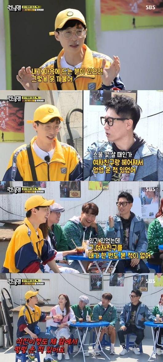 지석진은 “유재석이 스무 살 때 내 앞에서 여자 친구랑 헤어져서 펑펑 운 적이 있었다. 여자 친구 있다는 소문만 들었는데 진짜 울어서 놀랐다”고 폭로해 놀라움을 안겼다.