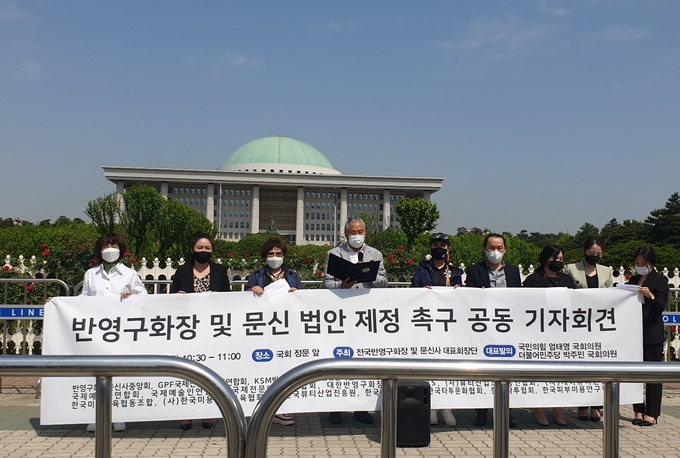 [스포츠월드=최정아 기자] 반영구화장 및 문신 법안 제정 촉구를 위한 공동기자회견을 서울시 영등포구 국회대로 758 국회 정문앞에서 13일 21개 단체를 대표하여 반영구화장문신사중앙회 팽동환 회장이 했다.