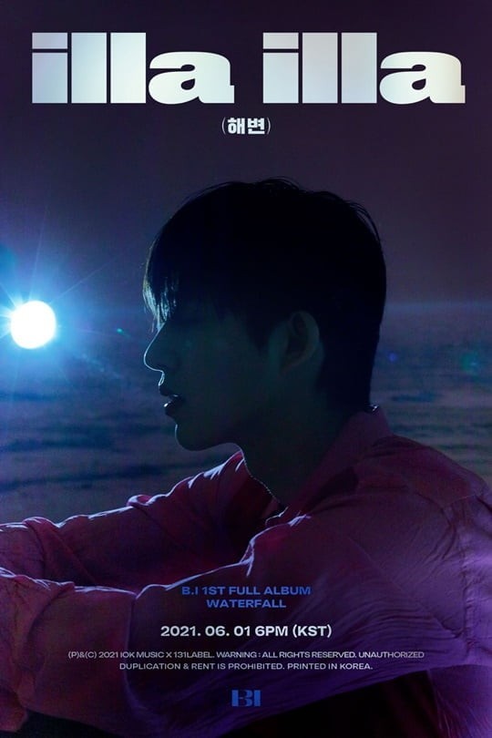 소속사는 26일 자정 공식SNS 계정에 오는 6월 1일 발매되는 비아이의 첫 번째 솔로 정규앨범 ‘WATERFALL (워터폴)’ 타이틀곡 ‘해변(illa illa)’의 타이틀 포스터를 공개했다.