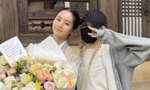 공개된 사진에는 로제와 함께 다정한 포즈를 취하고 있는 혜리의 모습이 담겼다. 혜리는 꽃다발을 들고 감동하여 올듯한 표정을 짓고 있다. 두 사람의 돈독한 우정이 훈훈함을 자아낸다.