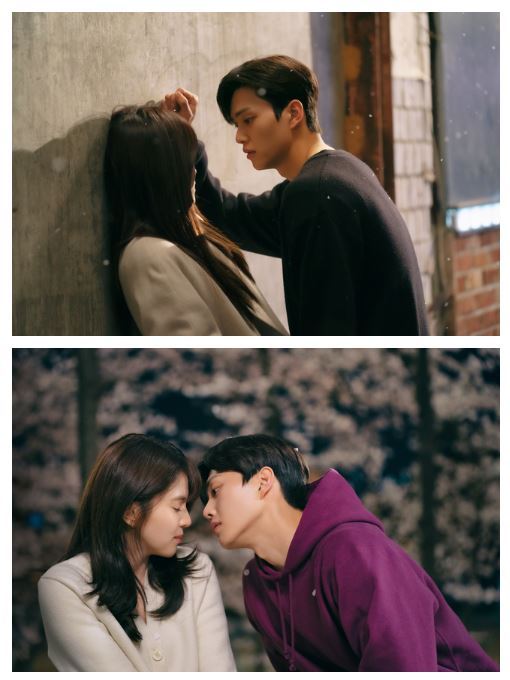 박재언과 유나비의 ‘키스 1초 전’ 모먼트는 걷잡을 수 없이 빠져드는 두 사람의 예측 불가한 관계성을 짐작게 한다. 두 눈을 꼭 감은 유나비와 그런 그의 바운더리로 과감하게 훅 들어선 박재언. 금방이라도 입술이 닿을 듯 아슬아슬한 순간은 보는 이들의 ‘숨멎’을 자아낸다. 시린 겨울밤에 운명처럼 만남 두 사람이 봄밤을 함께 맞이하기까지 어떤 일들을 겪어나갈지, 시작부터 아찔한 설렘을 예고하며 기대감을 고조시킨다.