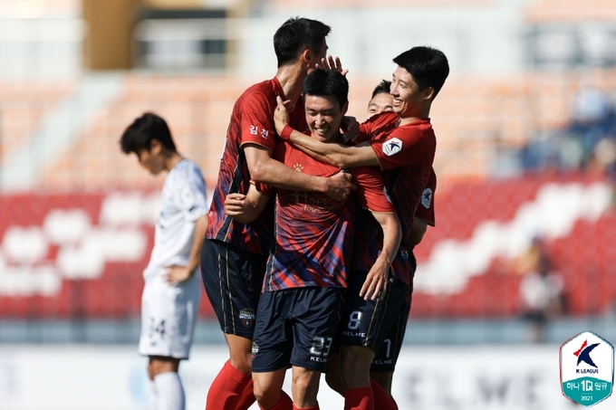 선제골은 전반 35분 터졌다. 정원진이 사이드에서 올린 크로스를 강지훈이 강력한 슈팅으로 이랜드 골망을 갈랐다. 후반 6분에는 추가골까지 신고했다. 허용준이 헤딩으로 패스를 내줬고, 박동진이 공을 몰고 상대 페널티박스 안으로 돌진했다. 이후 수비수를 제친 뒤 골을 터뜨렸다. 남은 시간 이랜드의 파상공세를 막아낸 김천은 기분 좋은 무실점까지 기록했다.
