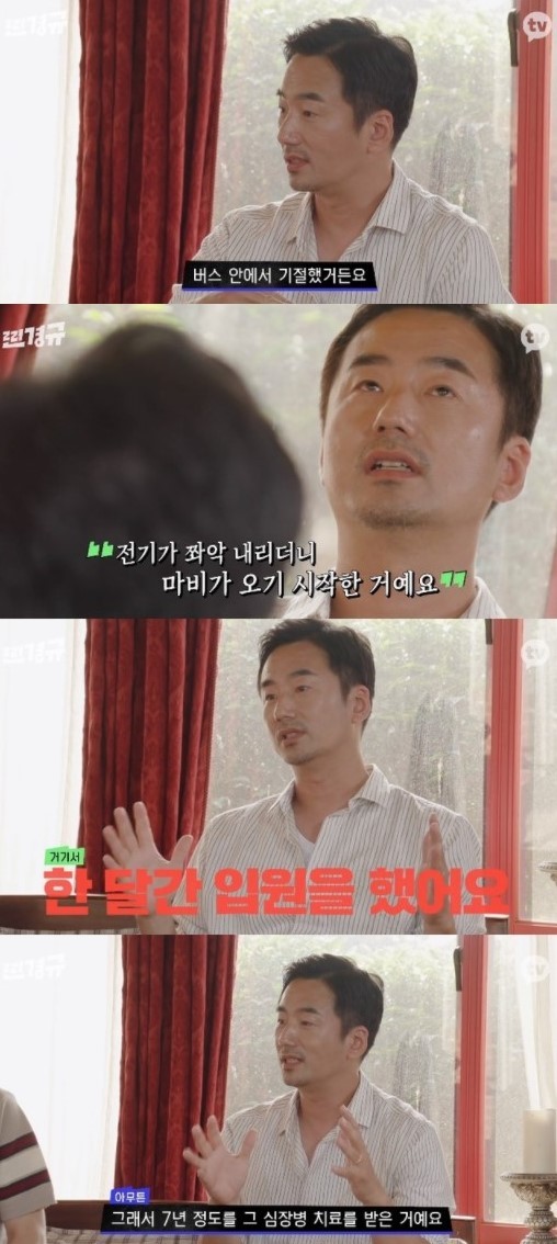 류승수는 “‘큰 병원으로 옮기세요’라는 말에 큰 병원으로 가서 한 달 동안 입원했다. 병명은 승모판 일탈증이었다”고 털어놨다.