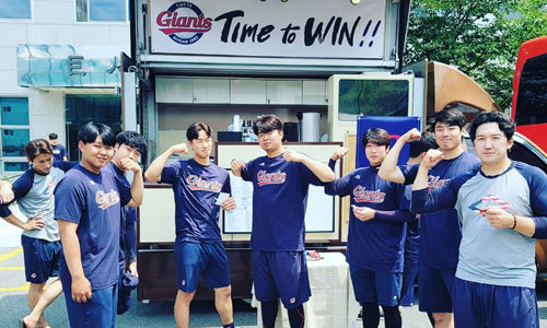 선수단은 함박 웃음을 지었다. 삼삼오오 모여 인증샷을 남기기도 했다. 투수 윤성빈은 “보통 커피를 밑에서 시켜먹거나 아메리카노밖에 못 먹는데, (선물을 보내주셔서) 전부 다 엄청 좋아했다”면서 “딸기요거트를 먹었는데 맛있었다”고 고마움을 전했다.