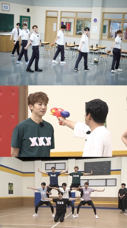 이날 형님들과 2PM은 팀을 나눠 ‘물총 참참참’, ‘밀가루 노래방’ 게임으로 대격돌을 펼쳤다. 게임에 앞서 두 팀은 기선제압을 위해 열띤 응원전으로 뜨거운 대결을 예고하기도 했다. 2PM은 녹슬지 않은 인간 탑 쌓기 군무를 선보여 현장의 감탄을 자아냈다.
