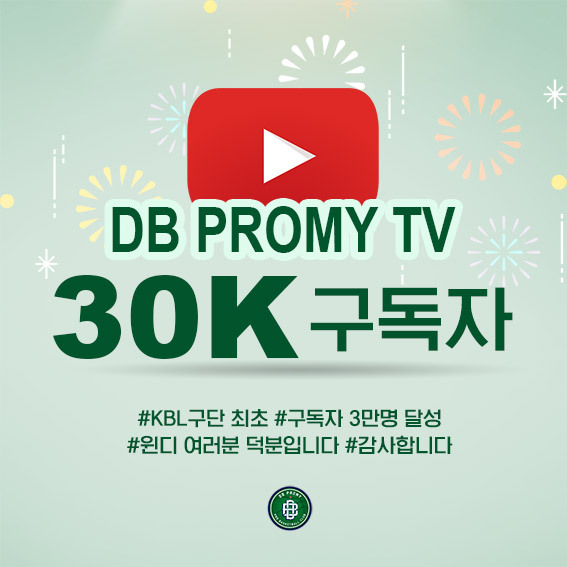 프로농구 DB의 공식 유튜브채널인 DBTV가 프로농구 최초로 구독자수 3만명을 돌파했다.