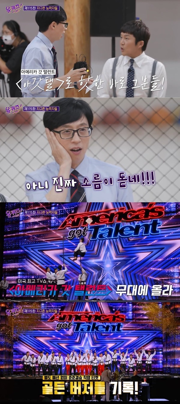 갑자기 대중문화계에서 태권도가 화제 중심에 섰다. 지난 14일 방영된 tvN ‘유 퀴즈 온 더 블럭’, 멀게는 지난달 15일 미국서 방영된 NBC 경연프로그램 ‘아메리카 갓 탤런트’ 때문이다. 먼저 지난 6월부터 방영된 ‘아메리카 갓 탤런트’ 시즌16 3회차에 한국의 세계태권도연맹 시범단이 출연, 현란한 태권도 공연으로 격찬 받으며 생방송 직행 ‘골든 버저’를 얻어낸 바 있다. 그리고 이를 ‘유 퀴즈 온 더 블럭’이 다루면서 화제몰이가 시작된 것. ‘아메리카 갓 탤런트’ 공식 유튜브의 시범단 영상도 불과 한 달여 만에 1500만 뷰를 기록하고 있다.