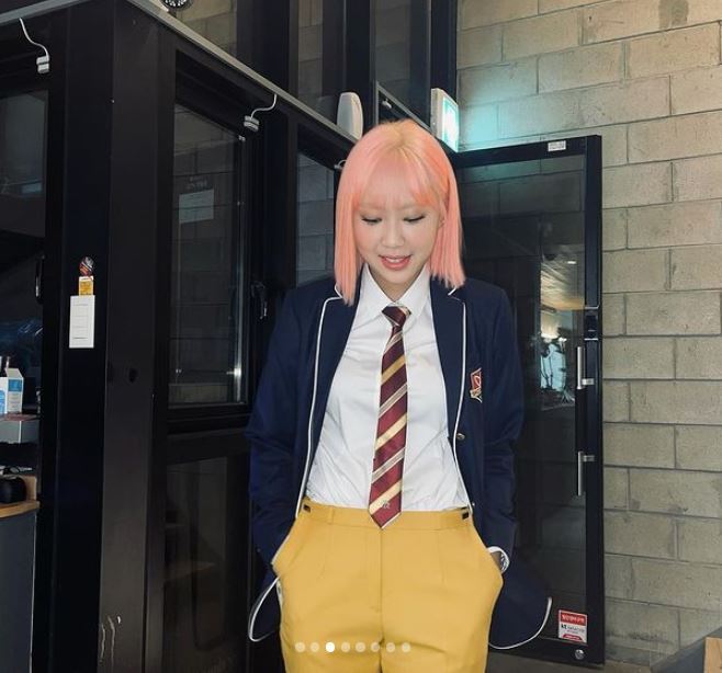 공개된 사진에서 핑크 단발머리를 한 이영지는 다양한 교복 스타일링을 선보이고 있다. 특히 노란색 팬츠와 맨투맨 등 다양한 코디를 완벽하게 소화해 시선을 사로잡았다.